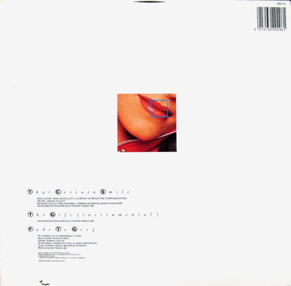 There is also a [url=http://www.discogs.com/release/1086525]clear vinyl edition[/url] that has the same catalog number. Track B2 recorded live at rehearsals 27/9/85. Photography ©1982 By Scientific American Books. ℗1985 Chrysalis Records Ltd. ©1985 Chrysalis Records Ltd. First published in the U.K. by Chrysalis Records Ltd. [Labels] Tracks A & B1 published by Mood Music. Track B2 published by Mood Music/Island Music/Performance Music ℗ & © 1985 Chrysalis Records Ltd [uncredited:] Stamper/metalwork by Musitech, High Wycombe. Track durations not listed on the release.