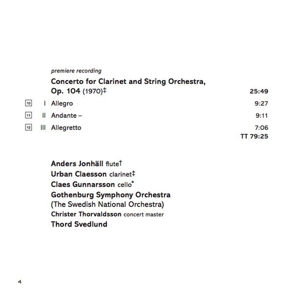 | Concerto For Clarinet And String Orchestra, Op.104 | 25:49 |