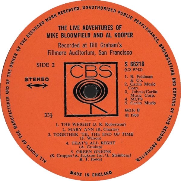 Recorded at Bill Graham's Fillmore Auditorium, San Francisco, September 26, 27, 28, 1968 Very similar to [r=1952255] but with a different printer and with Catalog No. appearing underneath the CBS logo on the back cover.