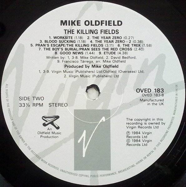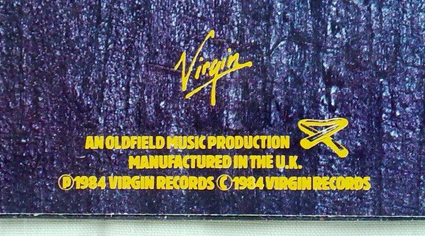 Recorded in England, Germany and Switzerland Manufactured in the UK White virgin labels with black text An Oldfield Music Production