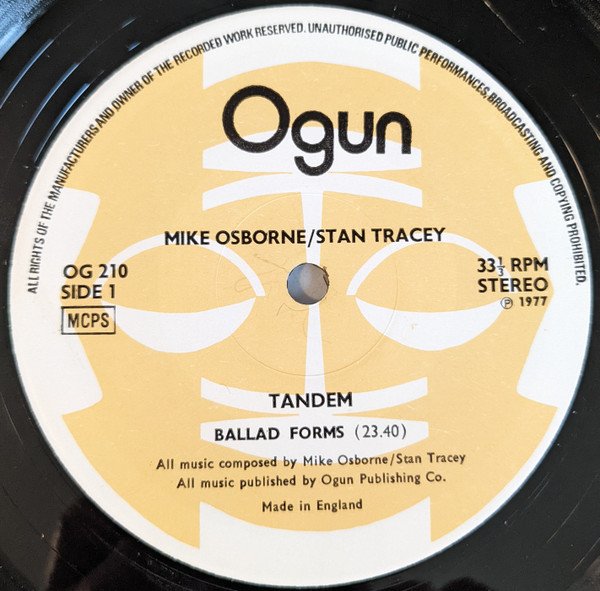 Sleeve notes in English.[Back cover] A1 and B1 recorded live at the Bracknell festival on 24 July, 1976, by Doug Gleave. B2 recorded live at South Hill Park, Bracknell on 26 November, 1976, by Doug Gleave. Edited in Hastings by Keith Beal. © 1977 Ogun Recording Ltd., 35 Eton Avenue, London NW3 3EP, England. Stan Tracey appears by arrangement with Steam Records.[Label] ℗ 1977 Made in England