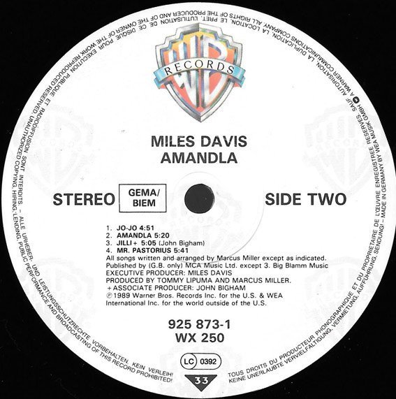 Manufactured in Germany. Pressé en Allemagne. TELDEC Record Service GmbH A2 produced for George Duke Enterprises Recorded at Clinton Recording, Right Track and Le Gonks West Additional recording: Ocean Way Studio, Power Station, Quadrasonic Recording, Electric Lady Studios Mixed at Bill Schnee Studio Published by (G.B. only) MCA Music Ltd. except A2 Carlin Music Corp. and B3 Big Blamm Music. ©1989 Warner Bros. Records Inc. for the U.S. and WEA International Inc. for the world outside of the U.S. ℗1989 Warner Bros. Records Inc. for the U.S. and WEA International Inc. for the world outside of the U.S.