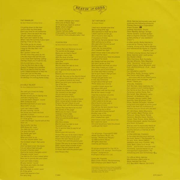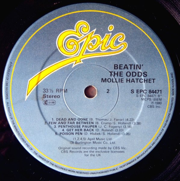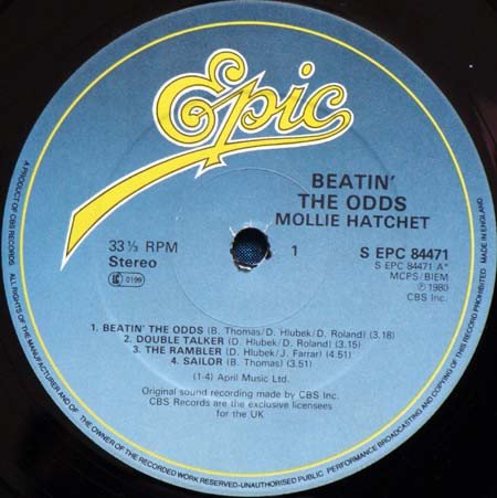 Made in England (on label) Yellow insert with lyrics (P 5884) Shorepak sleeve was made by Shorewood Mollie Hatchet written on both labels.