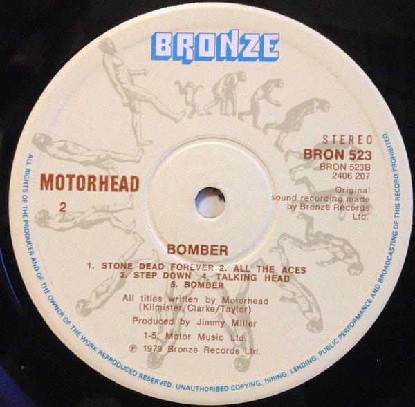 Recorded at Roundhouse Recording Studios and Olympic Recording Studios between July 7th-August 31st, 1979. [Labels] - "2406 207" appears below matrix, this number is not on other editions. - "℗ 1979 Bronze Records Ltd." No © on label. - "Original sound recording made by Bronze Records Ltd." - "All titles written by Motorhead (Kilmister/Clarke/Taylor)". - "1 - 5 Motor Music Ltd." - Other editions state "All songs written-by..." and "All songs published by...", see [r=11110774]. [Sleeve] - "All songs written by Kilmister/Clarke/Taylor". - "All songs published by Motor Music Ltd." - "© ℗ 1979 Bronze Records Limited." - "Printed in England by Robert Stace", bottom back cover. - Some copies have a stamp on front: "Limited Edition Special Price". Runouts are stamped.