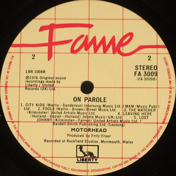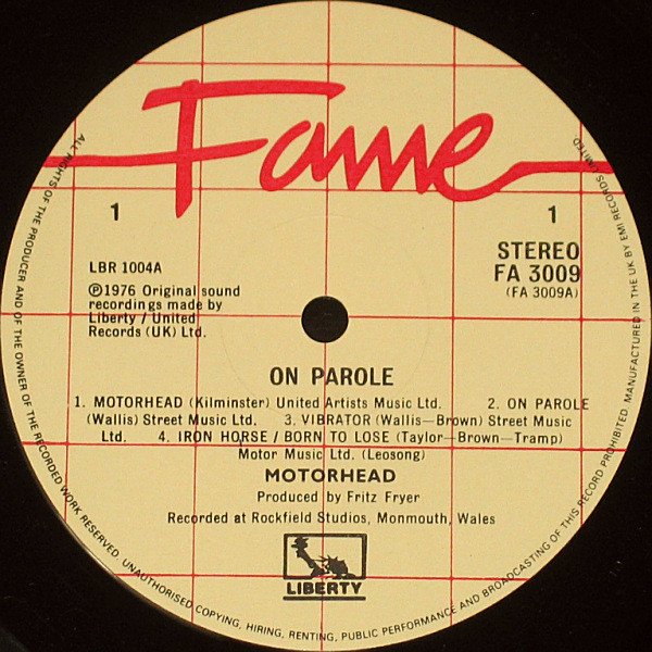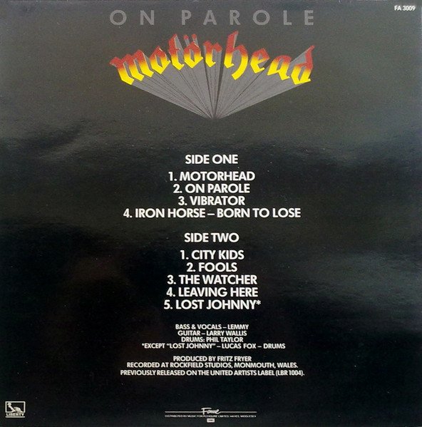 Runouts are stamped except for the BilBo 'N' GEOFF etching. Recorded at Rockfield Studios, Monmouth, Wales. Previously released on the United Artists label (LBR 1004). White inner sleeve. On both labels stated “Kilminster” instead of “Kilmister”.