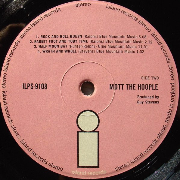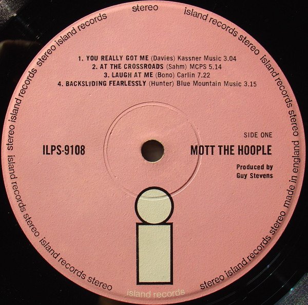 Producer Guy Stevens @ three o'clock Recorded July, 1969 This is a variant of the pink label with the white "i". Compare with [r2652358], where the production credit is set further down. Publishers: • Kassner Music - A1 • (MCPS is named for A2) • Carlin - A3 • Blue Mountain Music - A4-B4 Runouts are stamped.