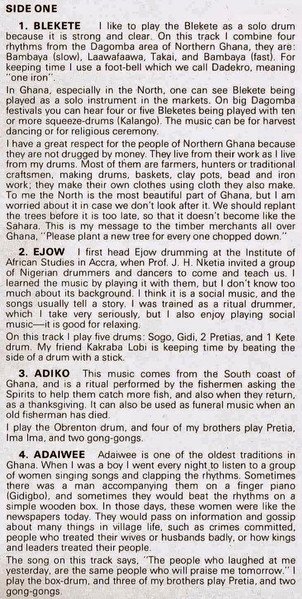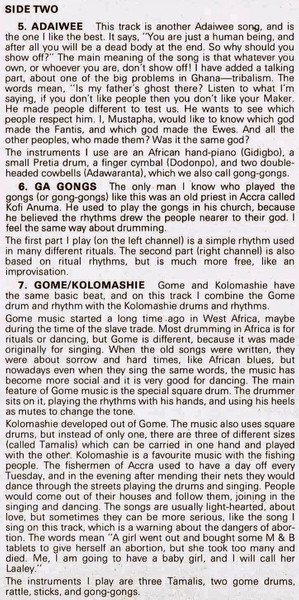 Tracks A1 to A3 recorded in Bonn. Tracks A3 and B1 recorded in Ghana. Tracks B2 and B3 recorded in multi-track studios in London