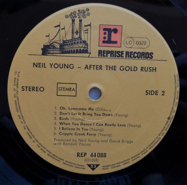 Steamboat Reprise Label. Gatefold cover. Labels with rights society "STEMRA" (unlike the almost identical [r2215623] - GEMA). Rear sleeve credits (only) Nils Lofgren for Piano. Embossed "W" Logo on rear sleeve, bottom right. On rear sleeve: Made in Germany by WEA Music GmbH, A Warner Communications Company Originally released in 1970.