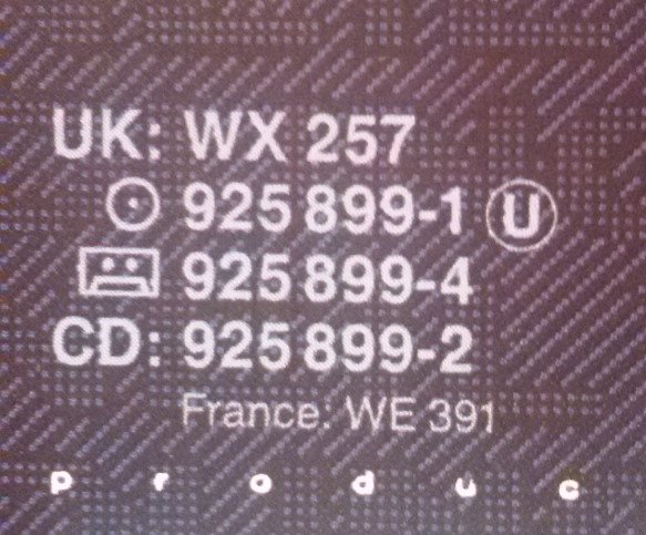 - Phonographic Copyright (p) – WEA International Inc.