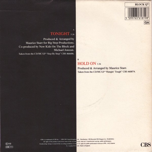 Comes in a fold-out Poster Sleeve. A: Taken from the CD/MC/LP "Step By Step" - CBS 466686. B: Taken from the CD/MC/LP "Hangin' Tough" - CBS 460874. © 1990 CBS United Kingdom Ltd. Made In England.