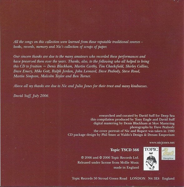 'This CD gathers together a remarkable series of live performances from the late 1970s'. Rear: Manufactured in the UK Insert: made in England Disc: Made in the EU Publishers: Mollie Music (1, 3, 6, 7, 9, 11, 12); Topic Records (2, 4, 5, 8, 10, 14)