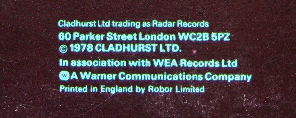 - Pressed By – CBS Pressing Plant, Aston Clinton