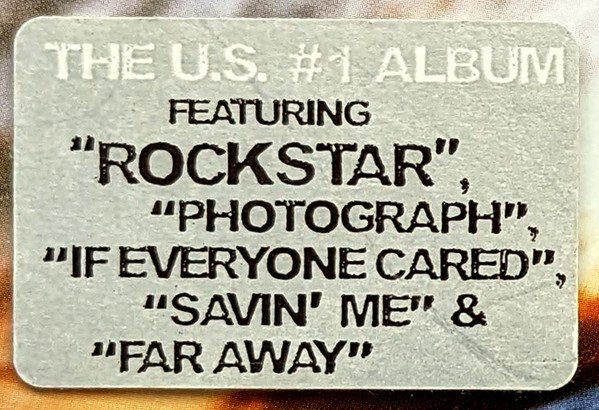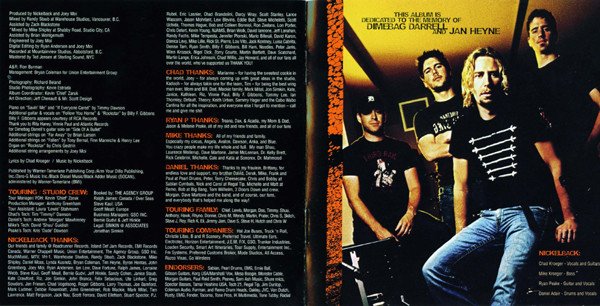 Issued with clear tray and a 12 page booklet containing credits, lyrics and photos. Some copies include oblong silver hype sticker with white and black text stating: "The U.S. #1 Album featuring "Rockstar", "Photograph", "If Everyone Cared", "Savin' Me" & "Far Away"" Some copies include oblong silver hype sticker with white and black text stating: ""The new CD featuring "Photograph", "Savin' Me", "If Everyone Cared" & "Far Away" Roadrunner records 25" [Back and CD] Issued under license to Roadrunner Records from The All Blacks B.V. Roadrunner Records is a registered trademark of The All Blacks B.V. ℗ & © 2005 The All Blacks B.V. [Booklet] Mixed at Warehouse Studios, Vancouver, B.C. and Shabby Road, Studio City, CA (Tracks 3 & 6) Recorded at Mountainview Studios, Abbotsford, B.C. Mastered at Sterling Sound, NYC. Billy F. Gibbons appears courtesy of RCA Records Published by Warner-Tamerlane Publishing Corp./Arm Your Dillo Publishing Inc./Zero-G Music Inc./Black Diesel Music/Black Adder Music (SOCAN). Administered By Warner-Tamerlane (BMI) This album is dedicated to the memory of Dimebag Darrell and Jan Heyne