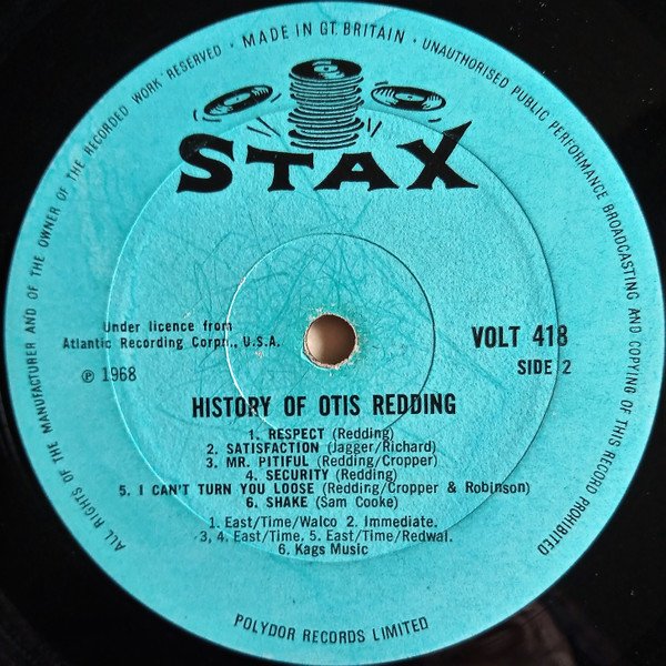 Made in Gt. Britain Under licence from Atlantic Recording Corpn., U.S.A. ℗ 1968 Publishing info: A1: East / Time / Curtom A2: Campbell-Connelly & Robbins A3: English / Time A4: Jarb A5, A6, B5: East / Time / Redwal B1: East / Time / Walco B2: Immediate B3, B4: East / Time B6: Kags Music ©1967 Atlantic Recording Corporation Printed in U.S.A. Similar to [r3796092] other than side A label publishing text layout and side B track 5 text layout.