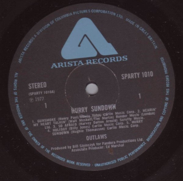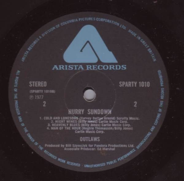 Sleeve SPARTY 1010* Labels SPARTY 1010 ℗ & © 1977 Arista Records, Upper Brook Street, London, W1 Arista Records, UK. Issued in a single sleeve and with a printed credit / photograph inner sleeve.