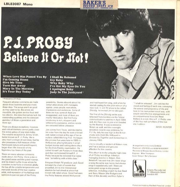 P.J. Proby - Believe It Or Not!