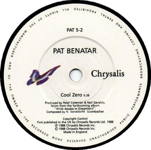 Also available as [url=https://www.discogs.com/release/1485595]a version with a patch[/url]. From the album "[m=41752]" (CDL 1628) First published in the UK by Chrysalis Records Ltd. 1988 ℗ 1988 Chrysalis Records, Inc. © 1988 Chrysalis Records, Inc. Made in England ©1988 2001 White Castle Way, Inc. Publishers: Track A: Chrysalis Music Ltd. Track B: Copyright Control Runouts are etched except for the Aston Clinton "broken" A (⋀), which is stamped.