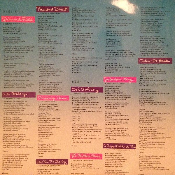 Mixed at The Complex Studios. A1, B3 mixed at Sound Castle Recording Studios. This was mastered at 'Master Room', another, otherwise, identical UK version was mastered at 'Tape One': [r=1511798]. There is third UK version without "Love Is A Battlefield" : [r=8032027]. Some copies came with a sticker on the front cover. (See images). Matrices are stamped except for the "tone" etch.