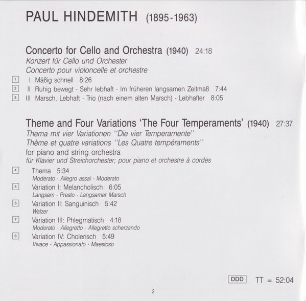 Paul Hindemith - Cello Concerto / The Four Temperaments
