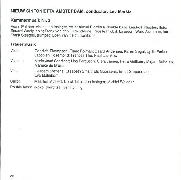 | Kammermusik Nr. 3 (Cello Concerto) Op. 36 No. 2 (1925) For Cello And Instrumental Ensemble | 17:58 | |