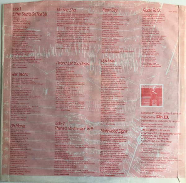 Issued in a semi-glossy sleeve and a polylined, double-sided printed inner sleeve containing lyrics and credits. "GEMA" on center labels, otherwise identical to other 1982 reissues manufactured at Record Service Gmbh, Alsdorf.Cat# on sleeve (rear, spine): WEA K 99 150 Cat# on center labels: WEA 99 150 Cat# on inner sleeve: WEA 99150Runouts stamped for the most part except for string ending etchings "X" and "31", respectively.Artist printed as "Ph. D." on spine.On back sleeve: Men's clothes by Metropolis of Covent Garden. Special thanks to Theo Roos. This album has been previously released in a different cover. Embossed Warner 'W' logo (bottom, lower right area). ℗ 1981 WEA INTERNATIONAL INC. © 1982 WEA INTERNATIONAL INC.On inner sleeve: Recorded at Ramport Studios, London, England. All lyrics © 1981 Polythemus Music. © 1981 WEA International Inc.On center labels: ℗ 1981 WEA International