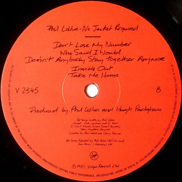 - Matrix / Runout: PHIL COLLINS - B MASTERDISK RL V 2345 B-2U-1-3-1