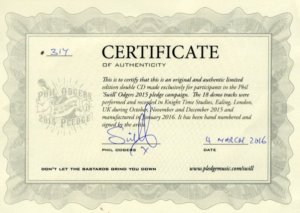 Crowd funding campaign run through 'PledgeMusic', the Double CD release contains 18 songs in demo or pre-production phase. The people that pledged to buy the CD's received a double CD set, that was signed and numbered and comes with a certificate of authenticity. The Pledger's who own the CD's will be able to vote for their ten favourite tracks, the ten most popular choices will then be further produced, and a general release CD will be made available with the finished tracks.