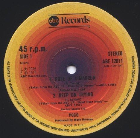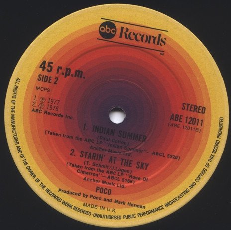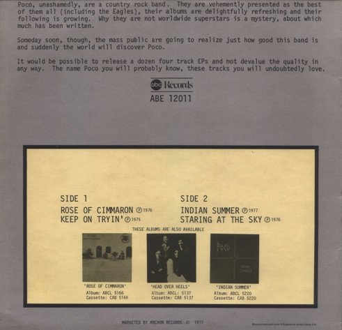 A1, B2 taken from the album "Rose Of Cimarron" A2 taken from the album "Head Over Heels" B1 taken from the album "Indian Summer" Marketed by Anchor Records © 1977