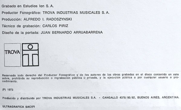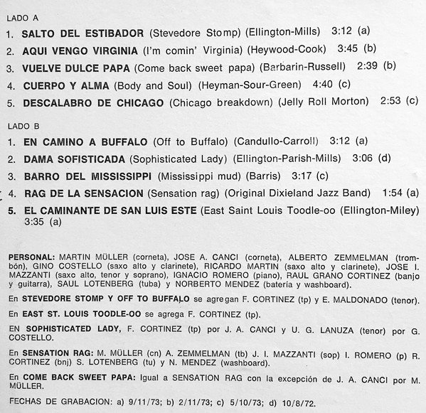 Fechas de grabación: 9/11/73: A1, B1, B4, B5 2/11/73: A2, A3 5/10/73: A4, A5, B3 10/8/72: B2