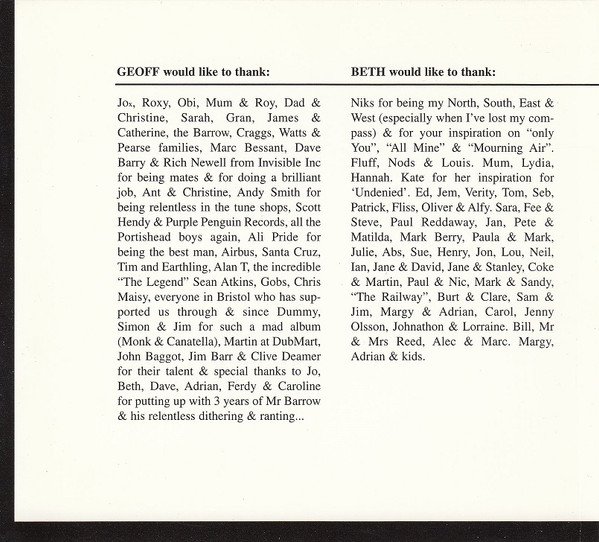 Digipak version. Pre-production at State of Art. Tracklaying at Ridge Farm. Mixing and tracklaying at Moles. All strings recorded at Air Studios. Track 4 - "Inspired by The United States of America." Samples: Track 9; "Inspector Clouseau" [Ken Thorne]; "She Said" [The Pharcyde]. Track 11 "Hookers & Gin" [Sean Atkins Experience], 1957. © & ℗ 1997 Go! Beat.