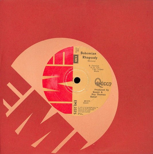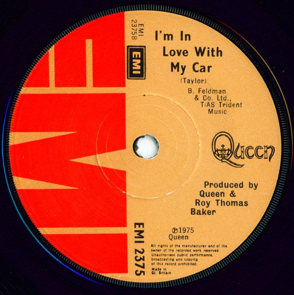 Similar to initial release [r486489], but with solid centre. B. Feldman & Co Ltd., T/AS Trident Music ℗ 1975 Queen Made in Gt.Britain