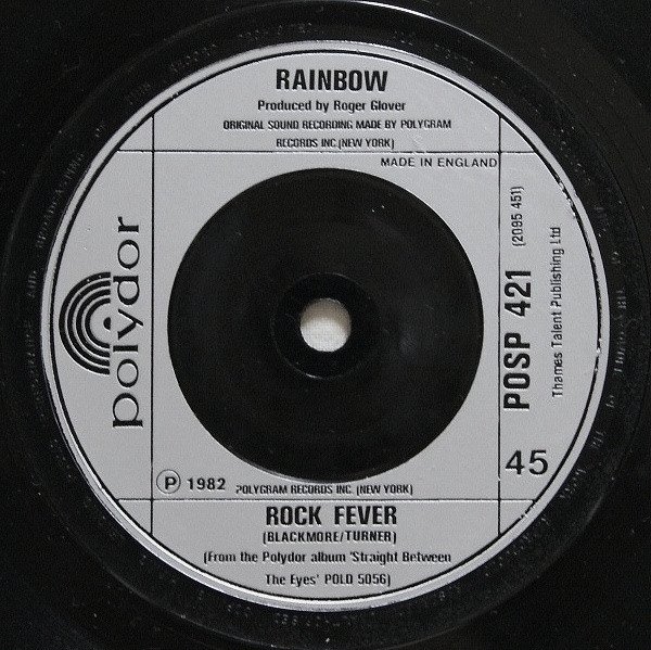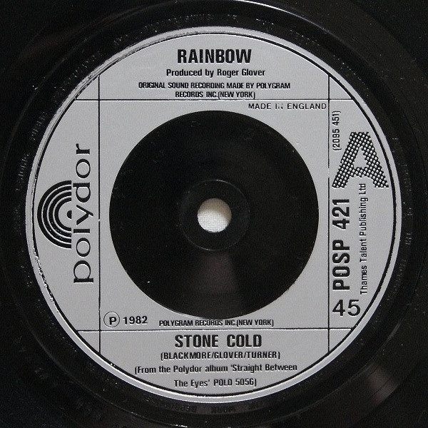 From the Polydor album '[url=http://www.discogs.com/master/40687]Straight Between The Eyes[/url]' POLD 5056 Thames Talent Publishing Ltd ℗ 1982 PolyGram Records Inc. (New York) © 1982 Polydor Ltd. UK Original sound recording made by Polygram Records Inc. (New York) Made in England There are no timings on cover or labels. Side A is shorter than album and maxi-single version. Runouts are stamped except for the following which sre etched: -”RAINBOW-A-RE-1” (side A) - ”RAINBOW-B” (side B)