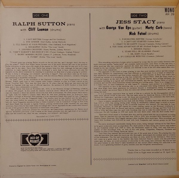 Tracks A1-A8 recorded 3 June 1953 Tracks B1-B4 recorded 16 March 1951 Tracks B5-B8 recorded 10 April 1951 Also issued with a different track order on [r=11650212].