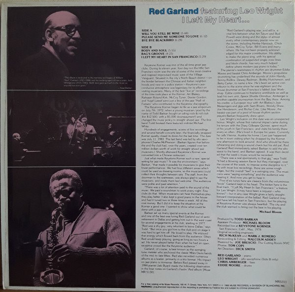 Recorded live at Keystone Korner, San Francisco, Calif., May, 1978. Cat# : "MR5311" on front and back cover, "MR 5311" on spine and labels Other parts of runouts are difficult to read : - Side A looks like "P066462" - Side B looks like "P05-545--2" On front cover "Todd Barkan presents Keystone Korner Series"