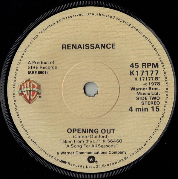 Label Notes: ℗1978 Warner Bros. Music Ltd. A product of Sire Records (SRE 6901) A Side Edited from the L.P. K 56460 "A Song For All Seasons" B Side Taken from the L.P. K 56460 "A Song For All Seasons"