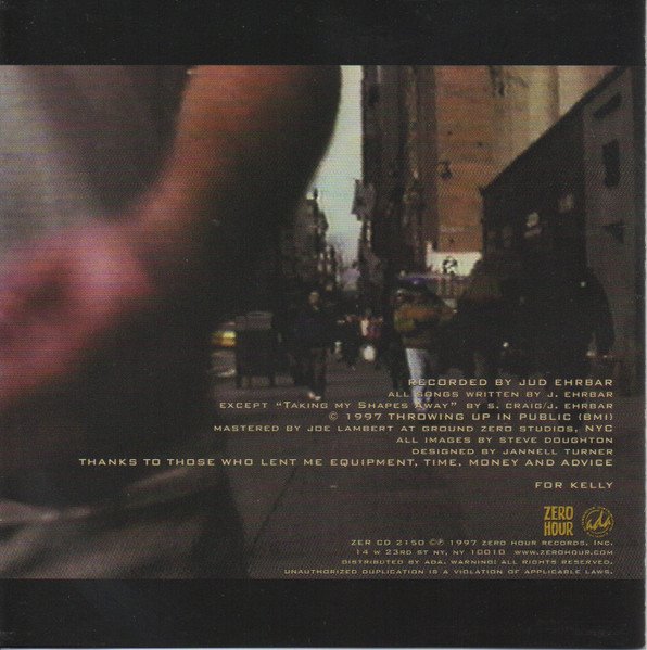 Mastered at Ground Zero Studios, NYC. (c) 1997 Throwing Up In Public (BMI) (c)(p) 1997 Zero Hour Records, Inc. Issued in a standard jewel case with an 8 panel fold-out insert.