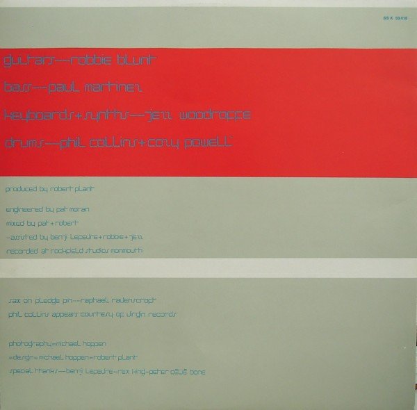 Recorded at Rockfield Studios Monmouth. Phil Collins appears courtesy of Virgin Records. Special thanks: Benji Lefevre, Rex King, Peter Célié Bone. Belgique/België: Distributed by WEA Records S.A./N.V. Deutschland: Vertrieb durch WEA Musik GmbH England: Distributed by WEA Records Ltd. France: Distribué par WEA/Filipacchi Music, Paris Italia: Distributed by WEA Italiana S.P.A. Nederland: Distributed by WEA Records BN. Österreich: Vertrieb durch WEA Music Ges. m. b. H. Sverige: Distributed by WEA Metronome Records AB ℗© 1982 Atlantic Recording Corporation for the United States and WEA International Inc. for the world outside of the United States. Manufactured in Germany by Record Service GmbH. Alsdorf • Pressé en Allemagne par Record Service GmbH. Alsdorf [Warner W Logo] a Warner Communications Company. Druckhaus Maack KG, Lüdenscheid Made in Germany by WEA Musik GmbH