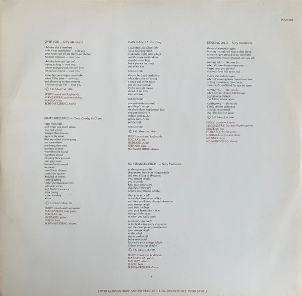 This is almost the same as [r1442813] but this is a label variant - includes Side Designations A & B on Labels - see images Engineered at Basing Street and Gallery Studio Mixed at The Power Station Mastered at Masterdisc All music property of E. G. Music Ltd except for Track A1 Warner Bros Records Ltd and Track B2 Tro/Essex Music Ltd