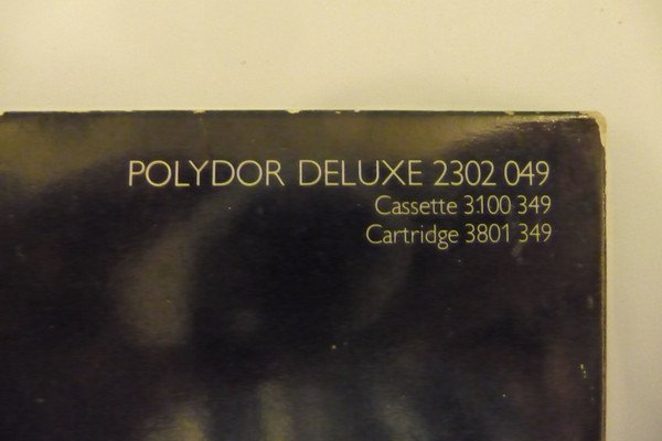 different label design Originally released 1973. On the back cover top: POLYDOR DELUXE 2302 049 Cassette 3100 349 Cartridge 3801 349 On the back cover bottom: Printed in England by Robor Limited On label: Made in England