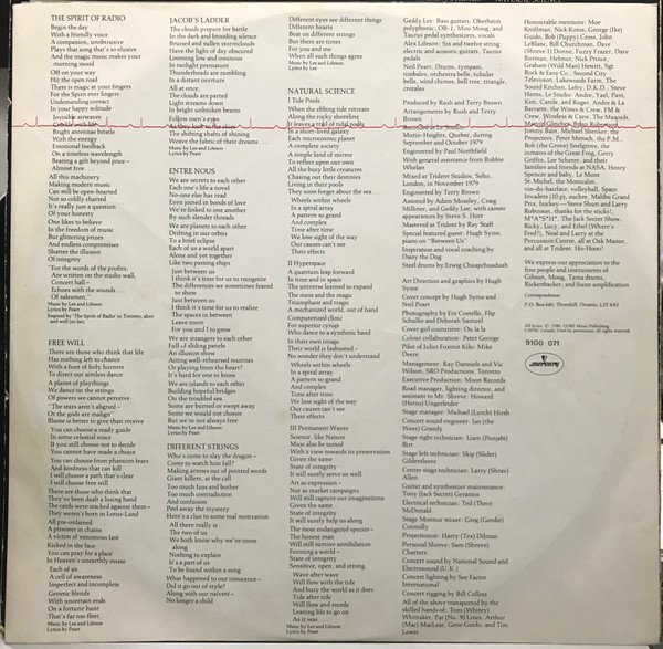 Recorded at Le Studio, Morin-Heights, Quebec, during September and October 1979. Mixed at Trident Studios, Soho, London in November 1979. On initial pressing the News paper cover that is blowing in the wind reads "Dewei Defeats Truman". On later copies the headline was blanked out. Apparently the Chicago Tribune who erroneously published this headline objected. These early copies also have a much thicker (card) inner sleeve. Later copies had a thin, shiny paper inner sleeve that tore easily. Marketed by Phonogram. Made in England
