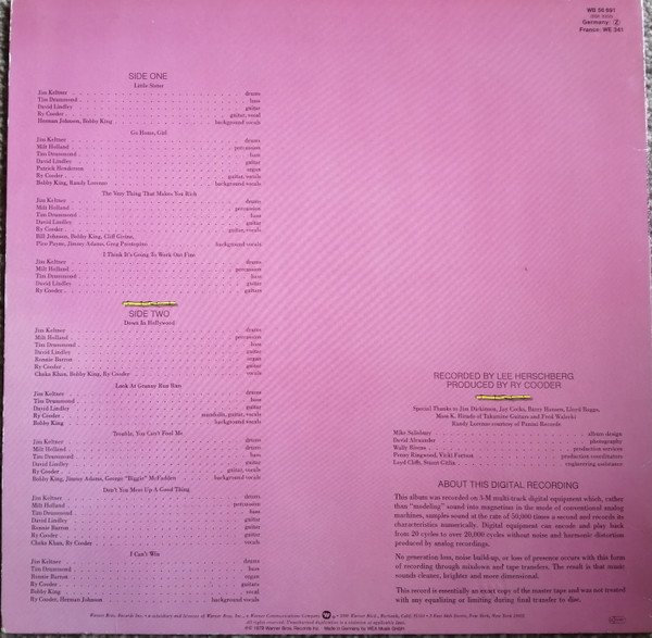Reissue in a glossy sleeve with 'W' embossed on rear; off-white labels with 'WB' logo watermark appear to be identical to [r=5226117], but with no rights societies credits. Album digitally recorded on 3-M multi-track digital equipment. Back cover states: ℗© 1979 Warner Bros. Records Inc. - Made in Germany by WEA Musik GmbH