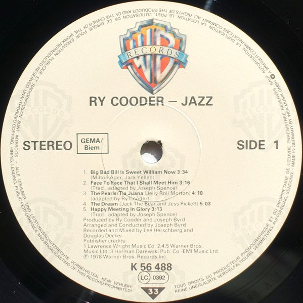 ℗ © 1978 Warner Bros Records Inc. Made in Germany by WEA Musik GmbH Warner W logo embossed on back sleeve. WB 56 488 on sleeve K 56 488 on labels
