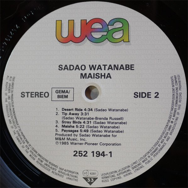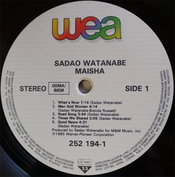 Recorded in North Hollywood. Re-mixed at CBS/Sony Roppongi Studios, Tokyo [labels] Made in Germany by WEA Musik GmbH [back cover] ℗ © 1985 Warner-Pioneer Corporation, Tokyo, Japan Manufactured in Germany by Record Serice GmbH, Alsdorf