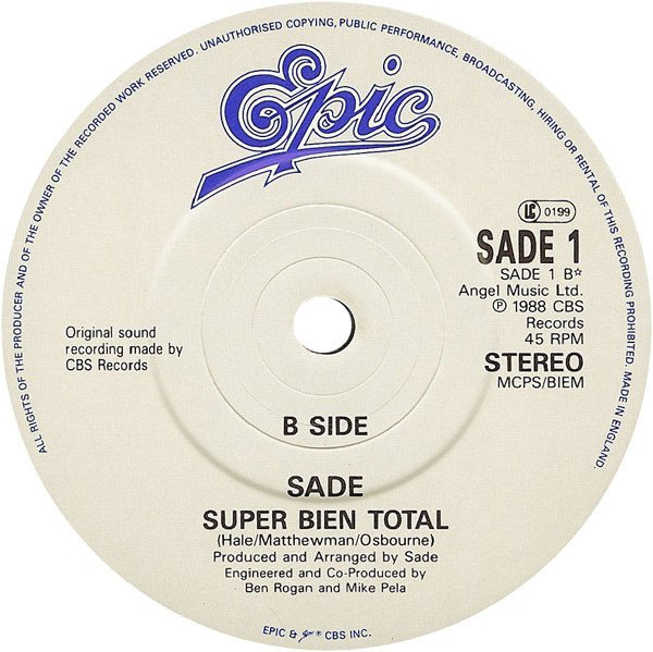 - Matrix / Runout: SADE-1-A-1 TY1 A