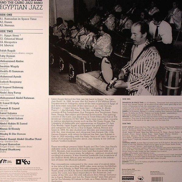 These recordings present Salah Ragab and The Cairo Jazz Band's definitive work, recorded in Heliopolis Cairo Egypt between 1968 and 1973. The track "Egypt Strut" was originally released on the Sono Cairo record label as a 45 rpm single. This is an Art Yard & Kindred Spirits collaboration Comes with a picture sleeve and extensive liner notes. This is the same remastered version as released in 2005 by Art Yard (UK).