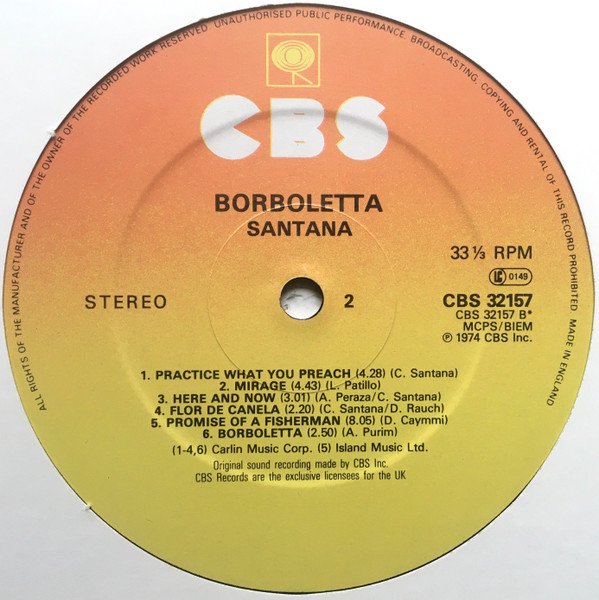 ℗ 1974 CBS Inc./© 1974 CBS Inc. Inner sleeve: © 1982 CBS Inc. Disc Made in England and sleeve printed in England Sunburst artwork style labels