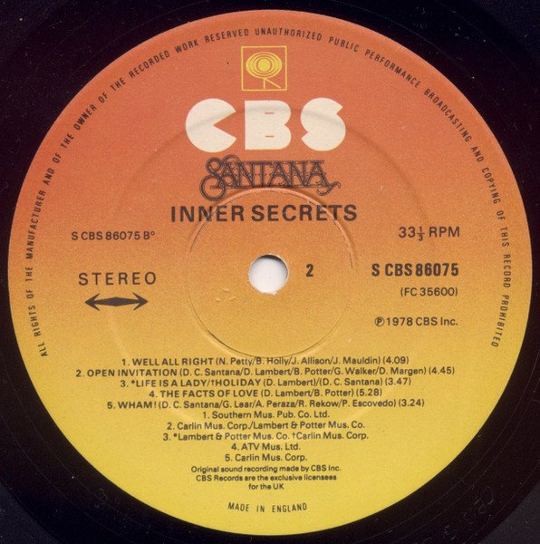 - Pressed By – CBS Pressing Plant, Aston Clinton