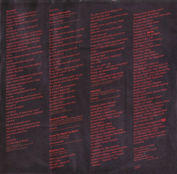 Photo and lyric inner sleeve.On label: Made in Holland ℗ & © 1981 CBS Inc.On cover: Printed in HollandOn inner sleeve: Music knows no frontiers, It is free-all-where. Its contribution to emotional integration Human and divine Can never be fathomed © 1979 Sri ChinmoyThe runouts are stamped, except for the hand-etched PAL & PBL stringsTrack A1: Freshwater Music Ltd. Tracks A2, A3, B1, B3, B5, B6: Light Music (BMI) and Urmila Music (ASCAP) Track A4: Rick Meyers Track A5: Island Music Ltd. Track B2: Audigram Music (BMI) Track B4: MCA Music