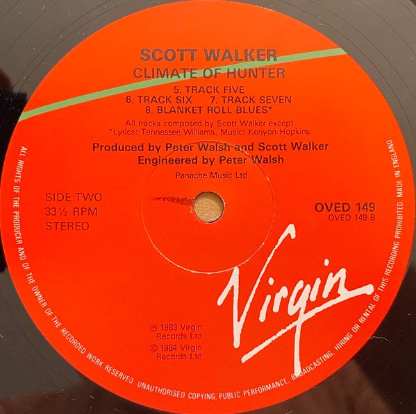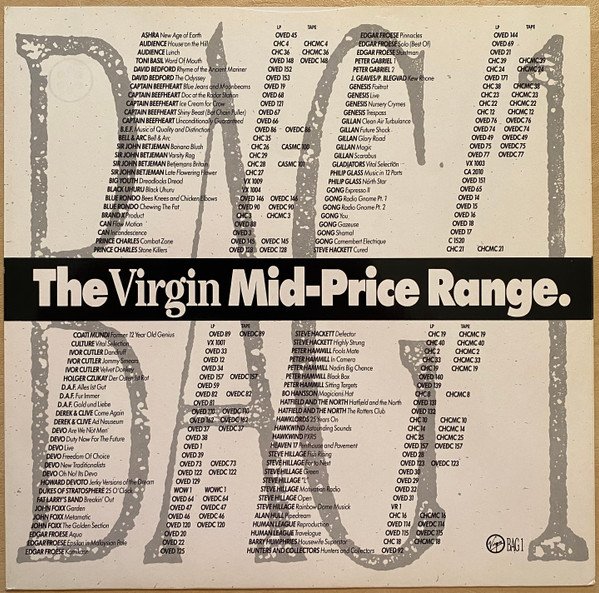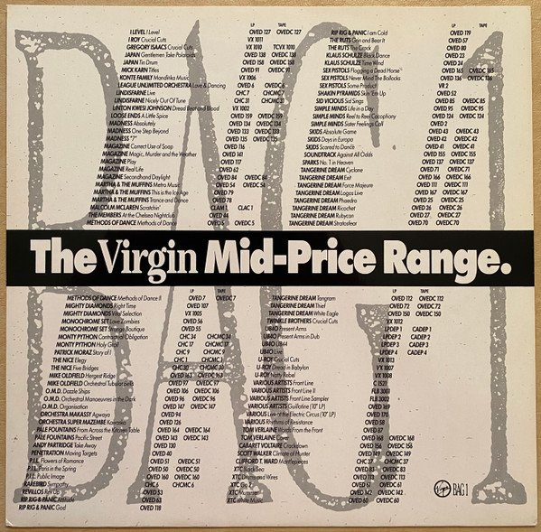 Composed between Aug.-Sept. 1983. Recorded at the Townhouse, EMI & Sarm West Studios, Oct.-Dec. 1983. Virgin Mid-Price Range reissue. In V2303 jacket with OVED 149 sticker over back top right V2303. Labels are OVED 149. Comes with Virgin Mid-Price Range printed inner sleeve. Made in England.