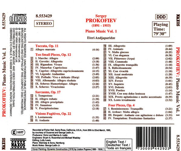Sergei Prokofiev - Piano Music Vol. 1: Visions Fugitives, Ten Small Pieces, Four Pieces, Sarcasms, Toccata